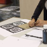 Een druktechniek waarbij je eigenlijk een soort stempels maakt.