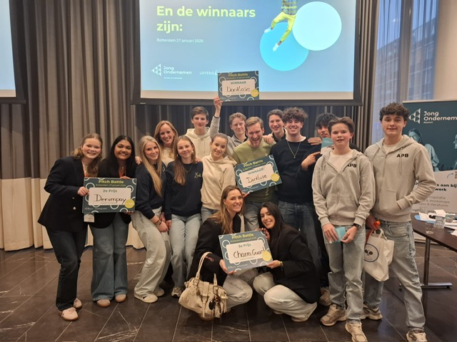 Op dinsdag 27 januari hebben leerlingen uit 5 havo en 6 vwo deelgenomen aan de regionale pitch battles van Stichting Jong Ondernemen. Deze leerlingen volgen bij ons op school het Junior Company-programma en presenteerden tijdens een pitch van twee minuten hun bedrijfsidee aan een kundige vakjury. In totaal deden zestien leerlingbedrijven mee en er waren mooie geldprijzen te winnen.